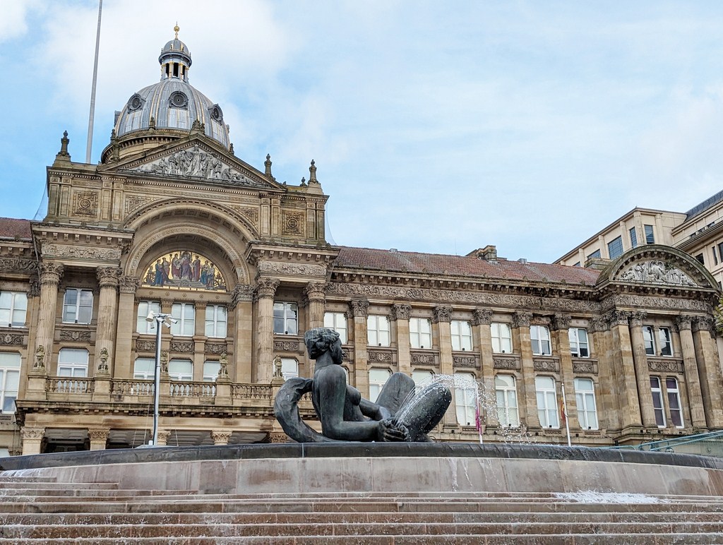 Victoria Square - Sculpture ''The River'' devant la Chambre du Conseil de Birmingham