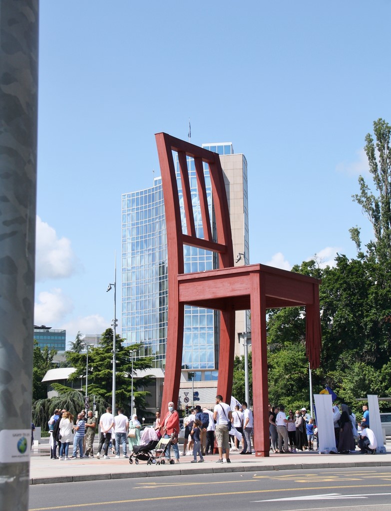 Geneva (Switzerland) - In front of the ''Broken chair'' Sculpture, Place des Nations