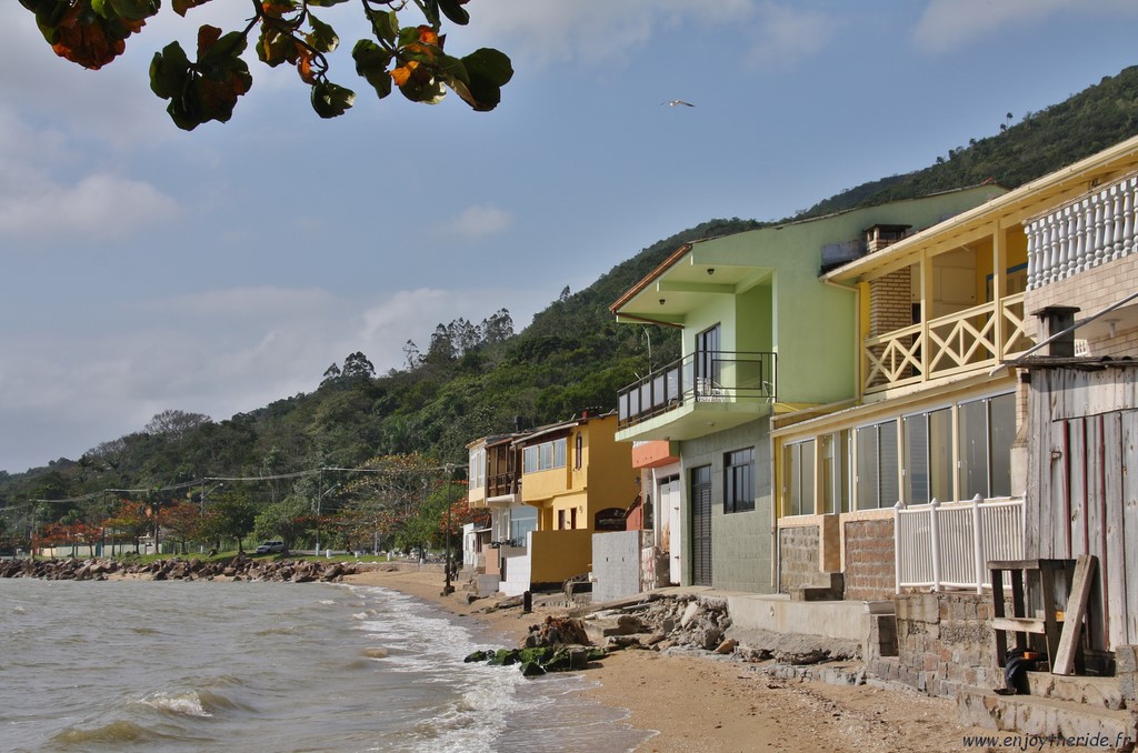 Au Sud, Ribeirão da Ilha (photo) est un petit village ostréicole hors du temps pétri de charme. On y pêche également la crevette. Nous nous y sommes longuement attardés, car le lieu est idyllique et d'un calme souverain. Ses criques et ses gros rochers se fondent dans un paysage d'eau turquoise et de verdure, agrémenté par de petites maisons de bois aux couleurs pastel et de petits pontons. Le village est également connu pour son Musée d'Ethnologie.