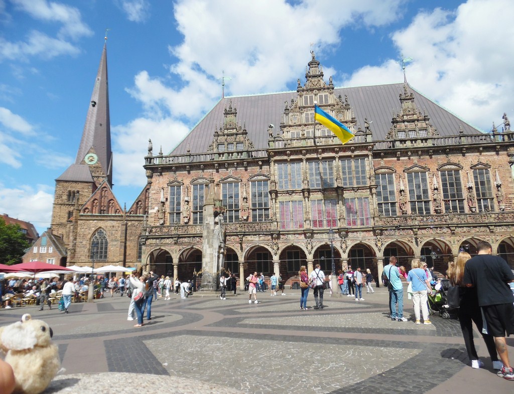 Kiko admires the City Hall in Bremen (Germany)