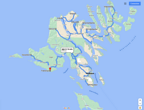 Kirkjubøur est un adorable village essentiellement construit à partir de bois de flottage. Nous l’avons visité en fin de journée en revenant de l'Île d'Eysturoy. Nous avons emprunté une «Buttercup Route» qui longeait des fjords, proposant des vues vertigineuses sur des lacs et des villages en contrebas. Par endroits, les routes sont si étroites que les véhicules ne peuvent pas se croiser. Des espaces sont aménagés sur le bas-côté pour que l’un d’eux s’y place afin de laisser passer l’autre. En chemin, nous avons eu la surprise de nous retrouver face à un mouton qui était carrément couché sur la route : à la fois têtu et effronté, il n’a pas bougé d’un centimètre et nous avons dû le contourner. Le respect vis-à-vis de ces ovins qui peuplent le pays vient naturellement. Après cette parenthèse amusante, nous avons fait une halte sur un point de vue élevé avant d’arriver à Tórshavn, sur laquelle nous avions une vue époustouflante.