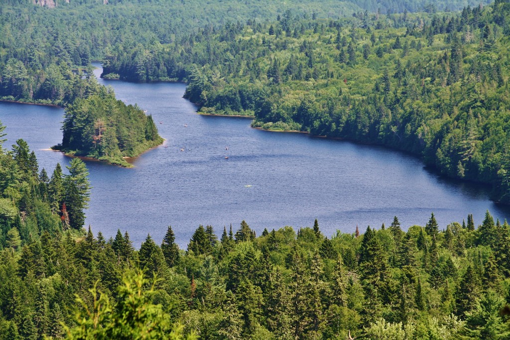 Le deuxième jour de notre trip, nous sommes partis de Montréal pour rejoindre le Parc National de la Mauricie (photo). Il est composé de vastes forêts de feuillus et de résineux entrecoupées de lacs dans un paysage légèrement vallonné. Dès les premiers kilomètres sur la route panoramique - dont une partie longe le Lac Wapizagonke - nous avons eu la chance d’apercevoir un jeune ours brun traverser devant nous. Nous avons loué des canoës pour traverser lacs et cours d’eau au cœur d’une vaste forêt de conifères. Puis, nous avons laissé nos embarcations sur la rive pour nous lancer dans une longue randonnée pédestre dans un cadre idyllique, dont l’attraction principale est la spectaculaire Chute Waber. Là, nous pouvions nous baigner, nous prélasser assis sur les rochers les pieds dans l’eau, où encore nous tenir sous les cascades les plus fines pour nous faire arroser et profiter de la fraîcheur. La bonne humeur était communicative entre tous les randonneurs. Puis, nous avons trouvé un peu plus loin un petit belvédère de bois qui offrait une vue plongeante sur un panorama grandiose. Le bleu profond du lac s’harmonisait avec le vert tendre des résineux. L’endroit appelait à la douceur et la rêverie. Nous avions l’impression d’être seuls au monde. L’endroit et le moment étaient magiques. C’est là que nous avons assisté avec bonheur à la demande en mariage de notre couple d’amis. Ce lieu restera à jamais lié à cet événement dans nos esprits.