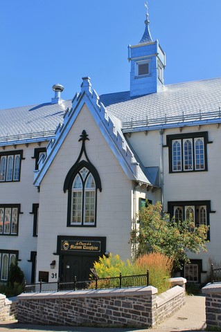 Le Vieux Québec est à juste titre classé au Patrimoine Mondial de l’UNESCO. Dans la Haute-Ville (photo), le Château Frontenac s’élève sur le Cap Diamant, partie orientale de la Colline de Québec. Hôtel de luxe comprenant 611 chambres et plusieurs restaurants et boutiques, il est l’édifice emblématique de la ville. Il fut bâti à la fin du 19ème siècle en pierre de taille et en brique rouge, le tout étayé par une ossature d’acier. Asymétrique, il dispose de cinq ailes, d’une tour centrale, de plusieurs tourelles et d’une cour intérieure. Ses toits pentus percés de mansardes comprennent par endroits de hautes cheminées. L’entrée est libre et nous avons pu admirer sa somptueuse décoration intérieure. Le Lieu Historique National des Forts-et-Châteaux-Saint-Louis propose des visites guidées permettant d’en découvrir le rez-de-chaussée. À son pied s’étend la Terrasse Dufferin : très vaste et constituée de planches de bois, elle comporte des kiosques à musique au charme désuet et à l’architecture raffinée. La Promenade des Gouverneurs la prolonge : essentiellement constituée d’escaliers, elle passe tout près de la Citadelle pour aboutir aux Plaines d’Abraham, théâtre de la défaite des Français contre les Anglais en 1759. Elles se situent sur le Parc des Champs-de-Bataille, havre de verdure de plus de 100 hectares. La Citadelle fut érigée par les Anglais durant la première moitié du 19éme siècle au sommet du Cap Diamant, dans un style influencé par Vauban (fortifications en forme d’étoile). Elle abrite à présent la Résidence du Gouverneur Général du Canada et le Musée Royal 22ème Régiment. Ses terrasses offrent une vue époustouflante sur la ville et le Fleuve Saint-Laurent.
