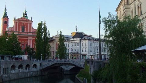 Des brassées de fleurs fraîches et colorées pendent nonchalamment le long des quais de la Ljubljanica et des ponts la surplombant, notamment le fameux Triple Pont (photo) au caractère vénitien. L'ambiance est jeune, chaleureuse et animée. Le marché quotidien apporte un supplément de gaieté au vieux centre et attire quelques musiciens de rue qui viennent s’y produire.