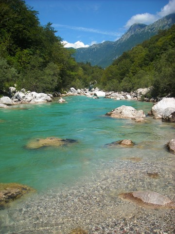 La Soča (photo) est une rivière incroyablement turquoise aux nombreux courants. Paradis des pêcheurs, kayakistes et baigneurs, elle prend sa source dans les Alpes Juliennes. Quelques ponts de bois suspendus au charme typique la surplombent par endroits. Kobarid est par excellence l'endroit où elle s'épanouit. N'hésitez pas à y faire une longue halte. En effet, ce village se situe dans un endroit où la vallée s'élargit, ce qui permet à la rivière d'arborer toute sa beauté. Ceci ajouté à son musée et ses monuments en font une halte indispensable, même si le bourg en lui-même n'a rien d'exceptionnel. De plus, ses restaurants sont réputés pour être parmi les meilleurs de Slovénie. Si vous suivez le parcours longeant le ruisseau de Kozjak, affluent de la Soča, vous aboutirez avec émerveillement aux pittoresques Chutes de Veliki Kozjak, au milieu d’une salle souterraine dont les concrétions rappellent celles des grottes karstiques comme à Postojna. La coulée d’eau d’environ 15 mètres de haut offre un spectacle naturel époustouflant en se jetant dans le ruisseau, dans un prisme de couleurs émeraude et turquoise perçant la pénombre.