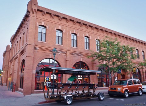 Le samedi 15 juin, nous revenions de Sedona en Arizona pour nous rendre au Grand Canyon, étape suivante. Nous nous approchions de Flagstaff. Pris par le temps et la longueur de la route, nous avons hésité à nous y arrêter. Puis, nous avons finalement décidé d'y faire une simple halte avant de poursuivre notre chemin. Mais comme à Hollywood Boulevard, nous avons été emportés par l'ambiance et la chaleur du moment, et nous y avons passé la soirée. Là aussi, ce fut mémorable. Encore un heureux imprévu. La petite ville étudiante célébrait Pride of the Pines - la Gay Pride locale - ce que nous ignorions. L’ambiance était gaie et festive, parfois bon enfant, parfois complètement débridée dans un étalage d'excentricités. Des gens issus de milieux totalement différents s'y mêlaient dans une parfaite harmonie et une grande insouciance. Nous avions de bonnes ondes. Nous nous trouvions chaque fois au bon endroit au bon moment, à la seconde près. Entre rencontres furtives mais marquantes, petits événements désopilants, tout s'enchaînait dans une série positive. Peu nous importait la route qu'il nous restait à faire, la nuit de sommeil très courte qui nous attendait avant la visite du Grand Canyon au lever de soleil. Nous ne pensions qu'au moment présent.