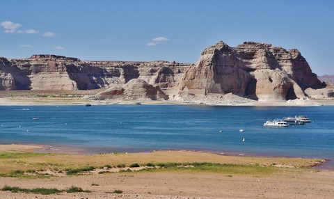 Nous avons visité le Lac Powell après Antelope Canyon et le Horseshoe Bend. Nous nous trouvions donc dans sa partie Sud, située en Arizona, plus précisément à Wahweap Beach (photo). Nous y avons pique-niqué, puis avons décidé de nous baigner dans le lac pour nous soulager de la terrible fournaise.